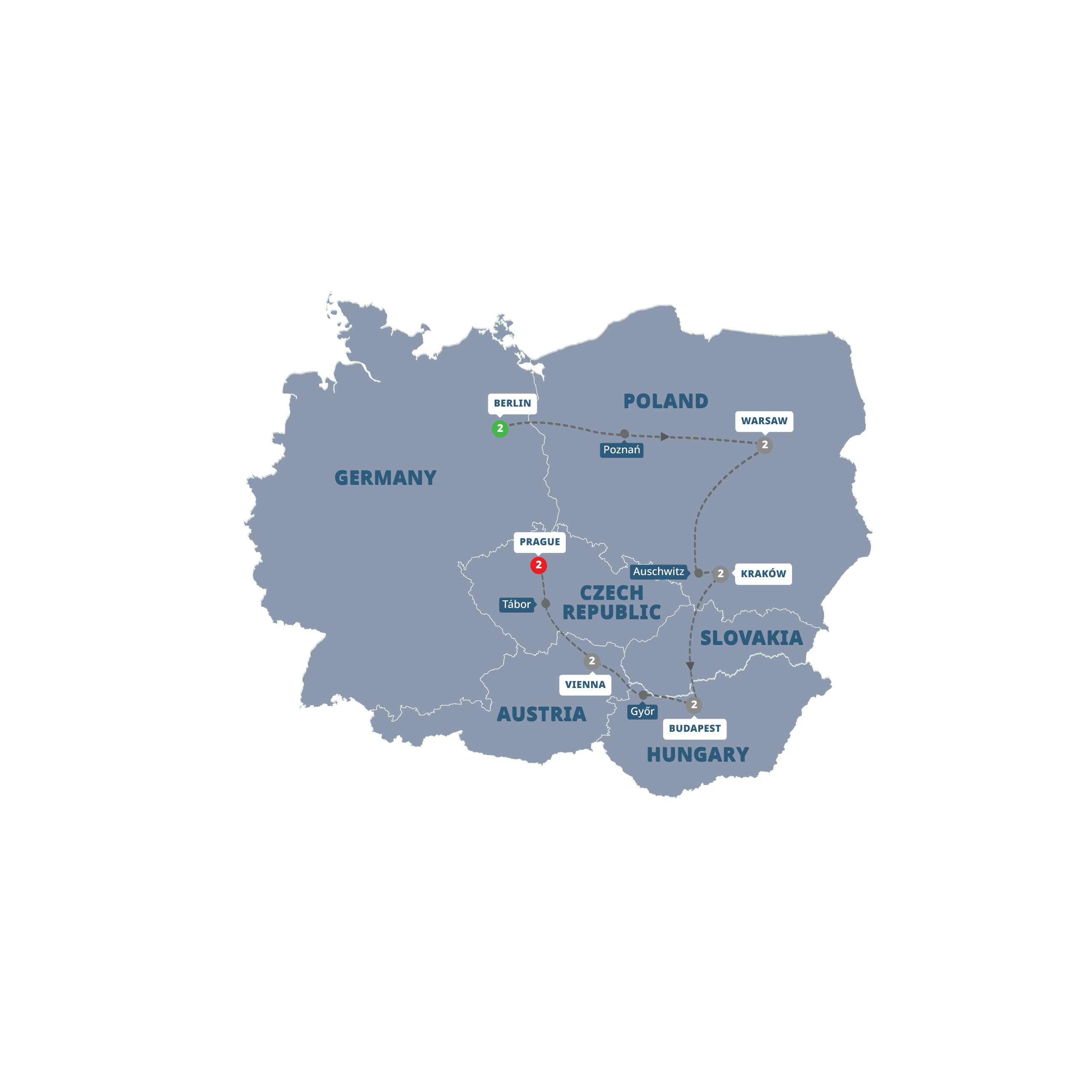 A jam-packed Bohemian trip showcasing the stories of central Europe. Learn about its colourful folklore and the tragedies of war as you visit the heart of Old Town Kraków, slice through the Carpathian