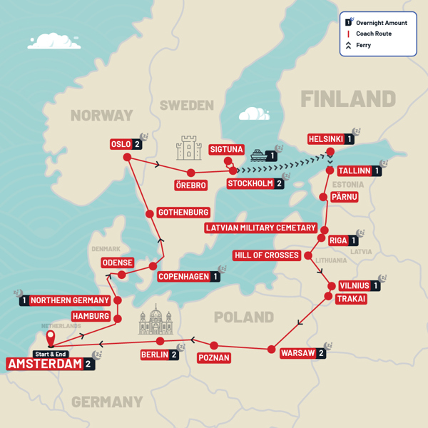 Denmark, Estonia, Finland, Germany, Latvia, Lithuania, Norway, Poland., Sweden, The Netherlands