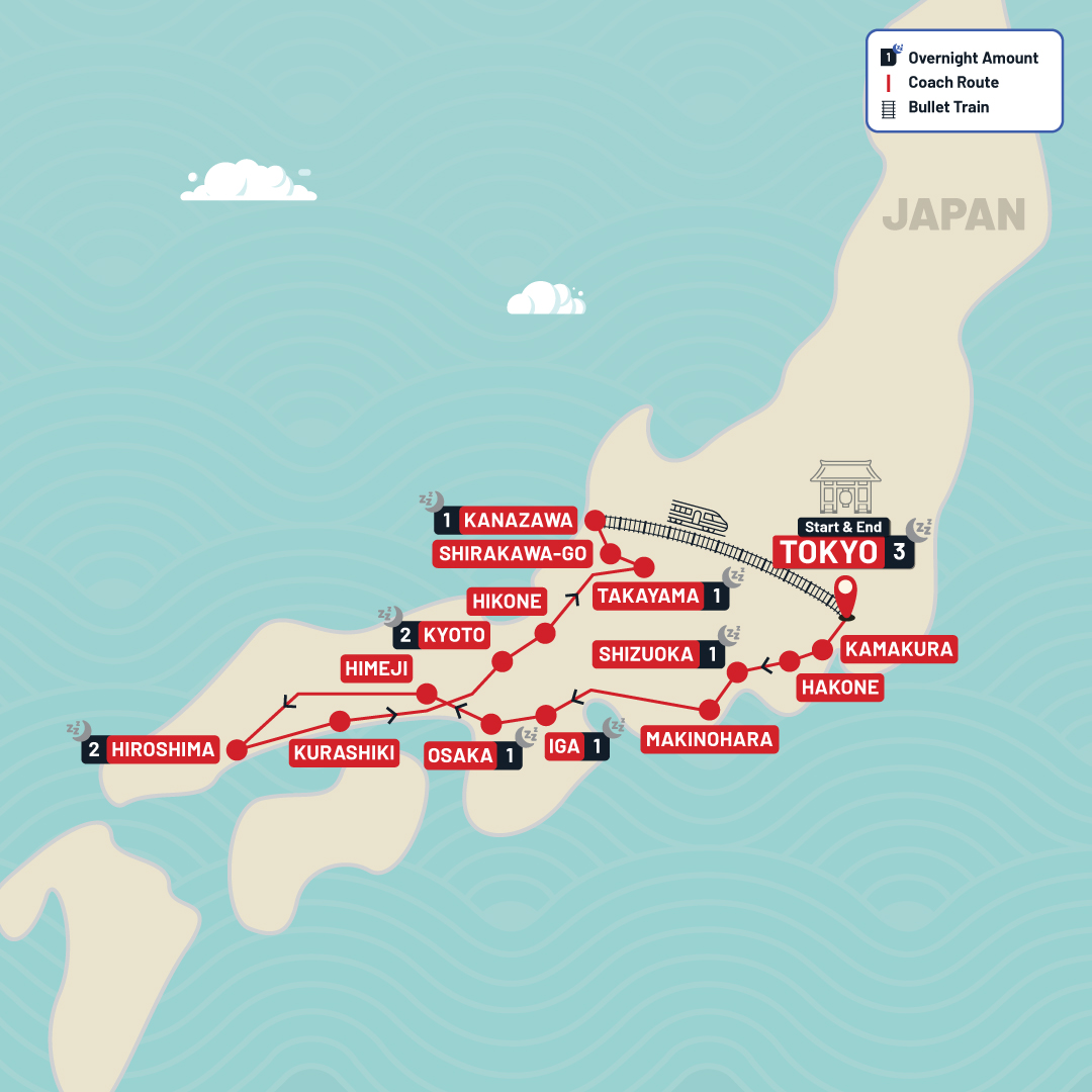 A tale of four iconic cities and two former capitals—your epic journey through Japan blends old and new, with soul-stirring visits to ancient centres and modern cities. The Activity Level of this tour