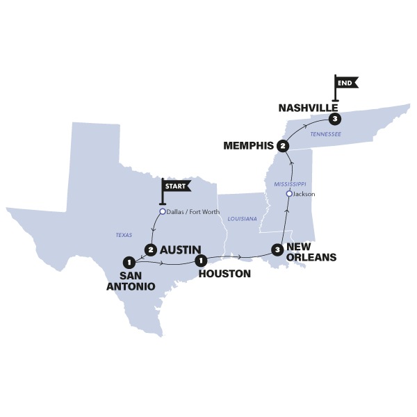 Looking for the ultimate southern road trip? Take a venture to the deep south for 13 days of mouthwatering eats, bright lights, breathtaking national parks and music-filled late nights. This trip willCanada, USA