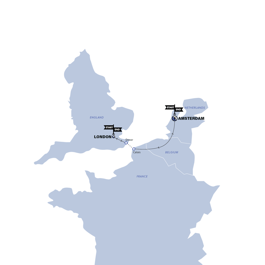 Today we’ll meet in the heart of London, throwing high fives to each other in recognition of the epic decision we all made to kick off the new year in Amsterdam. Let’s do this! Shortly before jumping on our ferry for France, we’ll be taking in the English coastline beauty of the White Cliffs of Dover, that owe their colour to a composition of chalk. Off the ferry we arrive in the port town of Calais - French soil! We travel north via Belgium before reaching ... Amsterdam! Home of good times and cuteness galore. Fun fact: the city has 1539 bridges, 165 canals, and 2500 house boats. Yes, you read that right, and it's all here for you to explore. The night is yours to start getting familiar with the scene that will ring in your best night of the year - we're calling it early!
