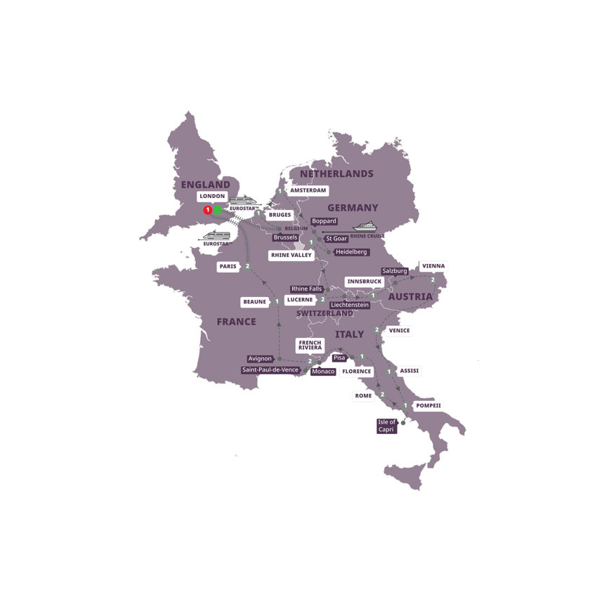 This Grand European trip includes all the must-see destinations while also taking you off the beaten path. Discover the gourmet talents of France, the heart of the Black Forest and the moreish delights of Sachertorte in classical Vienna, leaving with a song in your heart and a polka in your step.