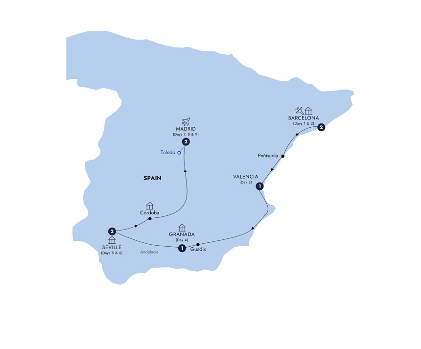 With your Local Expert, drive along the Passeig de Gràcia, adorned with elegant wrought-iron street lamps and some of the most flamboyant Modernist buildings. Continue through the Eixample district for a visit inside Gaudí’s extraordinary masterpiece, the Sagrada Família*, to see the central nave with its giant, tree-like pillars, spectacular vaulting and the beautiful rainbows flooding in through the intricate stained-glass windows. Enjoy the afternoon at leisure to explore or perhaps join an Optional Experience to Montserrat and The Black Madonna. *Please note that with the construction of the Sagrada Família nearing completion, access to the basilica may be restricted for special masses, pilgrim visits or official ceremonies, and we are unable to secure tickets to visit. Should this occur during your tour, you will visit the Hospital de Sant Pau instead, a striking example of Catalan Art Nouveau designed by Gaudí’s contemporary, Domènech i Montaner. Afterwards, join your Local Expert in the gardens surrounding the Sagrada Família and take in the extraordinary exterior of Gaudí’s iconic masterpiece.