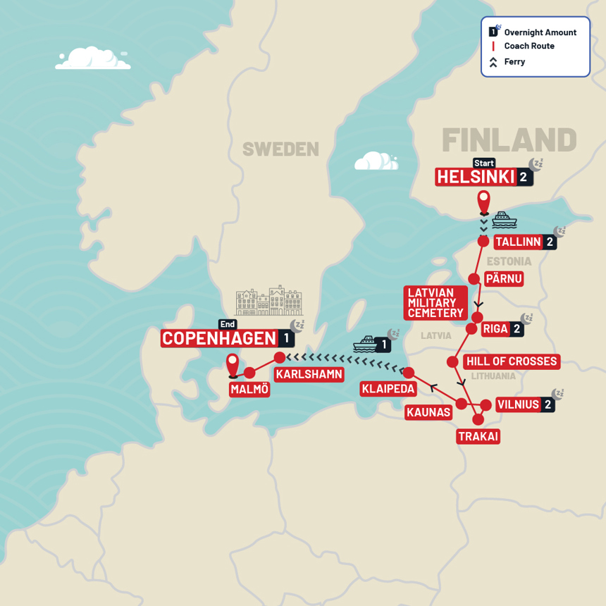 Experience the natural beauty, charming cities and unique local culture of the Baltics, Finland and Scandinavia. This 11-day Nordic & Baltic Escape tour features more time to explore with free days in the captivating capitals of Helsinki, Tallinn, Riga and Vilnius. Embark on escorted tours in the Baltic states and Finland, uncover hidden gems in Lithuania, visit Malmö in Sweden and end the tour in Copenhagen, Denmark’s vibrant capital city. From architectural wonders to quaint seaside towns and cosmopolitan capital cities, this Nordic & Baltic guided tour has it all!