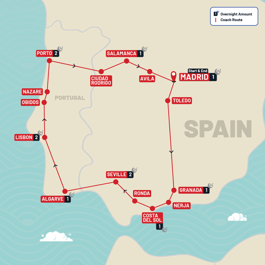 Get ready for an unforgettable experience on this 12-day Spain and Portugal tour! After meeting up with your tour leader and travel companions in Madrid this morning, hit the road to Toledo. Upon arrival, head out on an orientation tour of this UNESCO World Heritage town with its fairytale architecture and natural landscapes. Then, travel to the south of Spain for the next stop, Granada. This Moorish city is packed with history, culture and many tales! This evening, join the optional Granada Local Food & Wine Pairing to tuck into local gastronomy. Take note that the optional has to be booked prior to the start of the tour.
