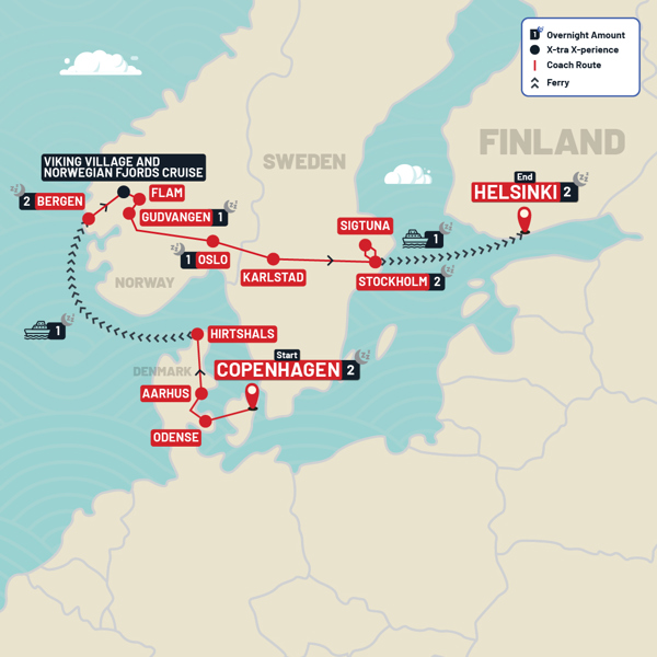 Spend the festive season sightseeing Scandinavia in winter, complete with natural scenery, vibrant cities and Viking villages. Embark on this Copenhagen to Helsinki Christmas & New Year tour, c