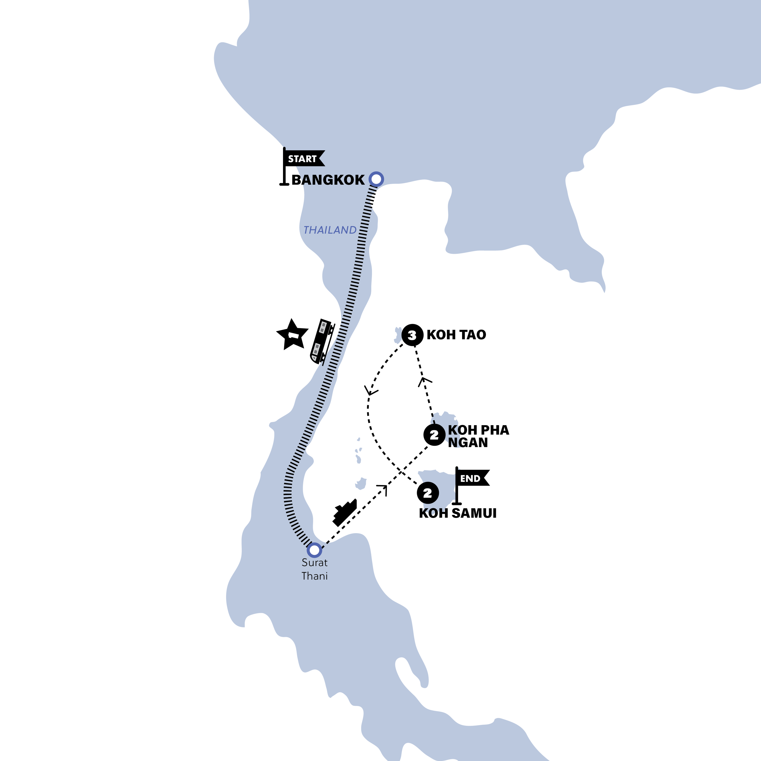 It's time to witness the paradise of the East Thai islands. We'll take you on a trip from Bangkok to Koh Pha Ngan, Koh Tao and Koh Samui - immersing you in iconic nightlife and Thai island adventures