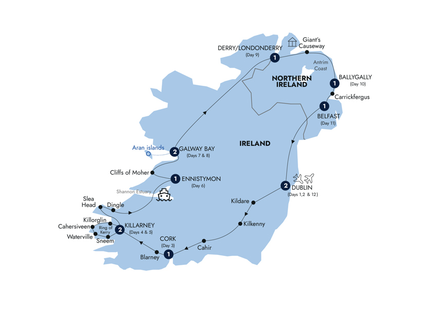 Let the luck of the Irish be with you on this 12-day guided tour across Ireland. Start the tour in Dublin, where you get up close to the Book of Kells, an ancient Gospel manuscript filled with mythical beasts and Celtic knots. In Kilkenny, visit the majestic Kilkenny Castle. A chef will share traditional Irish recipes at a farm-to-table feast in Killarney. You'll see the Ring of Kerry, a mystical, verdant peninsula dotted with seaside villages. Finally, step onto Giant's Causeway with it's basalt columns carved onto the coast by volcanic lava, or a giant's feet, if Irish myth is to be believed.