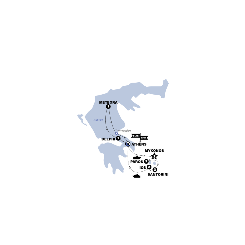 Ios: We'll board the ferry in Ios and head back to where we started: the lovely Athens. Includes reserved seating.