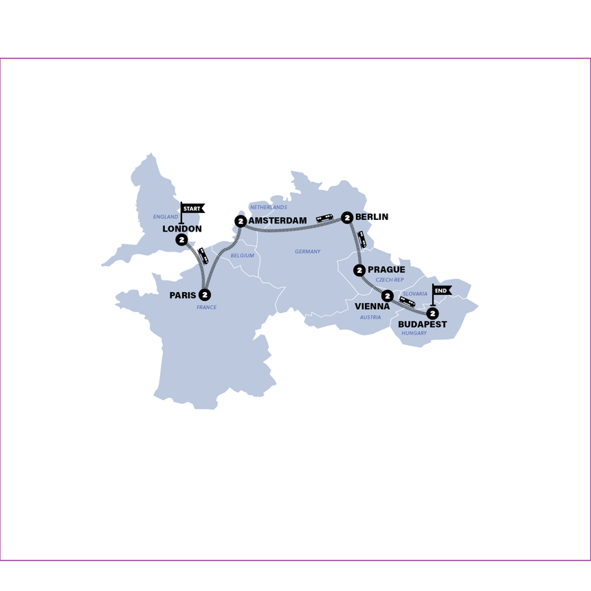 This one makes tracks through some of Europe's coolest cities, taking the train from London to Budapest and spending time in dreamy Paris, quirky Amsterdam, historical Berlin, bohemian Prague and opulent Vienna along the way. Foodie walking tours, street art, Berlin's iconic nightlife & a cruise on the Danube are just a few of the highlights, while scenic train rides show you authentic Europe from a classic mode of transport.
